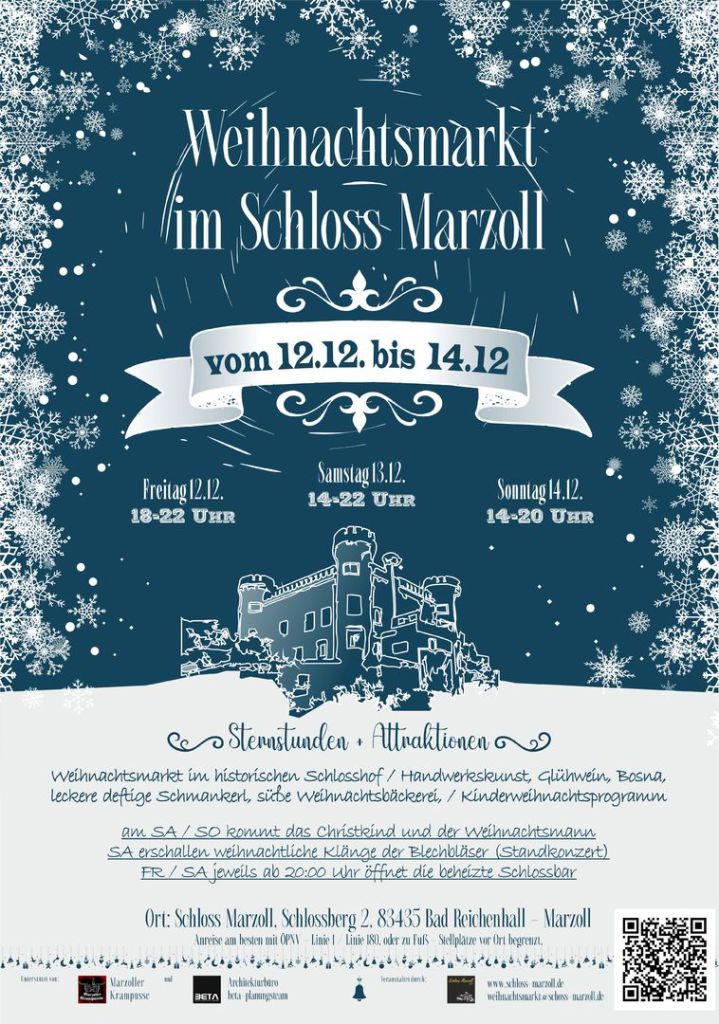 Sollten Sie an einem Stand am Weihnachtsmarkt im Schloss für Handwerkskunst interesse haben, können Sie sich gerne per E-Mail unter info@schloss-Marzoll.de bei uns melden.
